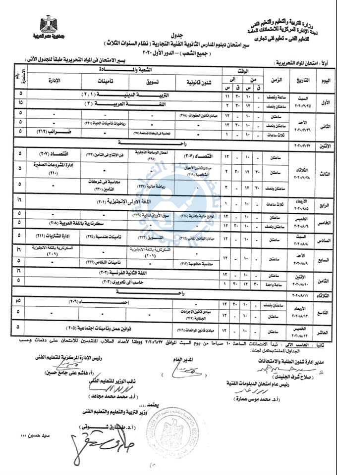 جداول امتحانات الدور الثانى والتكميلى للغربية 2020